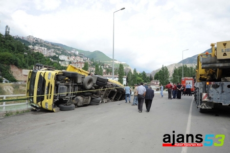 Gece, dinlemek ve uyumak üzere aracını park ettiğini belirten Şahin, "Araçta uyudum. Sabah saatlerinde 'deprem oluyor' düşüncesiyle uyandım. Kendime geldiğimde aracın yavaş yavaş devrildiğini fark ettim. Hemen kapıyı açarak araçtan atladım. Verilmiş sadakam varmış. Çoruh'a düşmeme az kalmıştı, çok korktum. Kamyon, demir korkuluklara takılarak durdu" dedi.