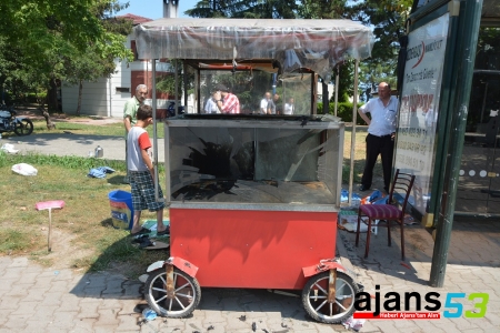Seyyar tezgahı kendisine 4 yıl önce talebi üzerine Fatsa Sosyal Yardımlaşma Vakfının verdiğini belirten Durak, "Zabıta ekipleri, bütün eşyalarıma el koydu. Tezgahıma el konulunca sinirlendim, kolonya dökerek tezgahı yaktım. Bana burada simit satamayacağımı söylüyorlar. Tüm ürünleri borçla alıp satıyorum ve para kazanıyorum. Şimdi ben borçlarımı nasıl ödeyeceğim? 4 yıldır burada satış yapıyorum ve kimseye zararım olmadı" dedi.
