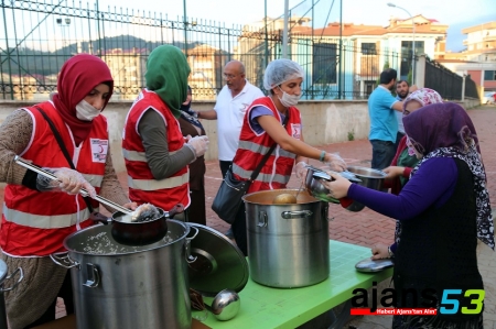 Türk Kızılayı, Hopa ilçesinde yaşanan sel ve heyelanda mağdur olan vatandaşlara sıcak yemek dağıtmaya başladı.