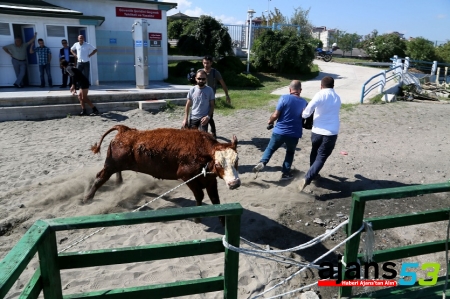 Uruguay'dan bir şirket tarafından getirilen 10 bin 334 hereford cinsi büyükbaş hayvanın bulunduğu gemi, Samsun Limanı'na yanaştı. Hayvanların gemiden indirileceği sırada tosunlardan biri denize atladı.