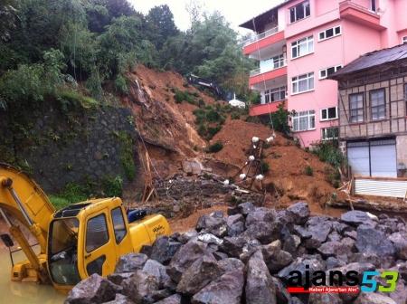 Bölgede 2 gündür etkili olan şiddetli yağmur Trabzon'un Sürmene ilçesinde heyelanlara neden oldu. İlçenin Yeniay mahallesi Kuleli mevkiinde heyelan nedeniyle eski bir ev yıkılırken, 4 katlı bir bina ise tedbir amaçlı boşaltıldı. Boşaltılan binada kalan vatandaşlar akrabalarının evlerine yerleştirilirken, Büyükşehir Belediye Başkanı Orhan Fevzi Gümrükçüoğlu ve Sürmene Belediye Başkanı Rahmi Üstün bölgede incelemelerde bulundu. Büyükşehir ekipleri bölgede temizleme çalışması yaparken, yaşanabilecek yeni heyelanlara karşı vatandaşlar uyarıldı.