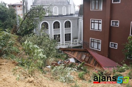 Trabzon'un Sürmene ilçesi Yeniay mahallesinde şiddetli yağış sonrası oluşan heyelandan zarar gören eski bir ev yıkılırken, 4 katlı bir bina ise tedbir amaçlı boşaltıldı.