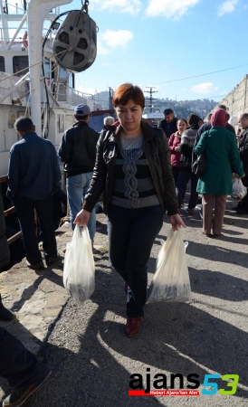 "Batı Karadeniz'de hamsi bollaştı. Ucuz fiyata satılan balıklar, dar gelirlinin yüzünü güldürüyor. Karadeniz'de av sezonu başladığından beri hamsinin kilogramı 5-10 liradan aşağı düşmedi. Zonguldak Limanı'nda teknede sattığımız 10 ton hamsiyi, vatandaşlar torba torba, bazıları da kasa kasa satın alıyor. Karadeniz'de balık bolluğu devam ettikçe ucuza hamsi satacağız. Satışlardan memnunuz. Limana teknemizi çekiyoruz ve pazara gidecek balığı ucuzdan vatandaşa satıyoruz."