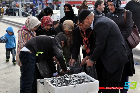 Vatandaşların ilgi gösterdiği dağıtımda, yaklaşık 2,5 ton hamsi kısa sürede tükendi.