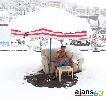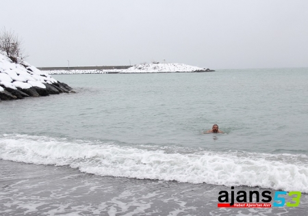 - Rizeli Zafer Koçal, kar ve soğuk havaya rağmen denize girdi