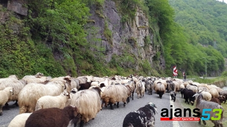 Göç sırasında Rize-İkizdere yoluna yayılan hayvanlar ilginç görüntüler oluşturdu. Zaman zaman yolu kaplayan hayvanlar trafiğin durmasına da neden oldu.