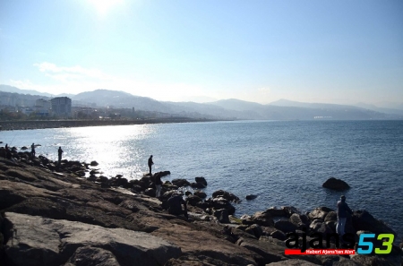 Trabzon'da hava sıcaklığının bu günlerde mevsim normalleri üzerinde seyretmesini fırsat bilen vatandaşlar sahilde oltayla balık tutarak günün keyfini yaşıyor.