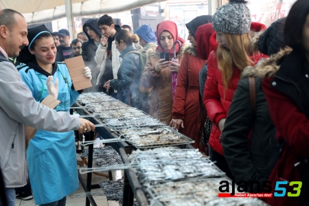 Yaklaşık 3 bin kişi 1,5 ton hamsiyi 2 saatte tüketti. Yağmura rağmen festivale ilgi gösteren vatandaşlara helva ve çay da dağıtıldı.