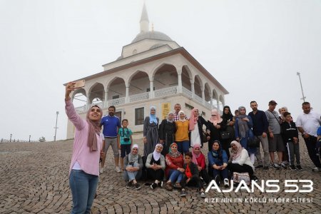 Türkiye Cumhurbaşkanı Recep Tayyip Erdoğan'ın baba ocağı Rize'nin Güneysu ilçesindeki 1130 rakımlı Kıble Dağı'nın zirvesine inşa edilen ve manzarasıyla ziyaretçilerin ilgisini çeken Kıble Dağı Hacı Hafız Yusuf Yılmaz Camisi'ne Arap turistler ilgi gösteriyor.