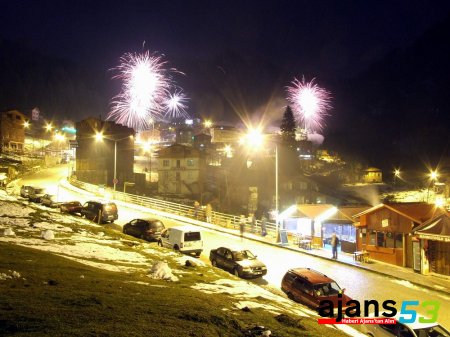 Rize'nin turizm cenneti Ayder’de vatandaşlar, yeni yıla tulum eşliğinde horon oynayarak girdi.