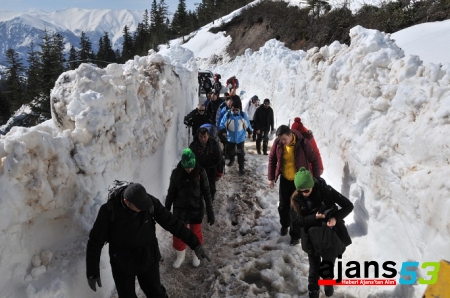Grubun büyük bölümü, iş makinelerinen 4 metreyi bulan kar kütlelerinin arasından açtığı yoldan araçları ile geçerek, bazıları da helikopterle Büyükyayla'ya çıktı. Kurulan sofralarda sıcak çay ile kahvaltı yapan gruplar daha sonra da 5 kilometre yolu yürüyerek geçti ve Kurdun Suyu Mevkii'ne ulaştı. Geceyi yayla evlerinde geçirecek olan grup yarın 11 kilometrelik yürüyüşün ardından ilçe merkezine inecek.