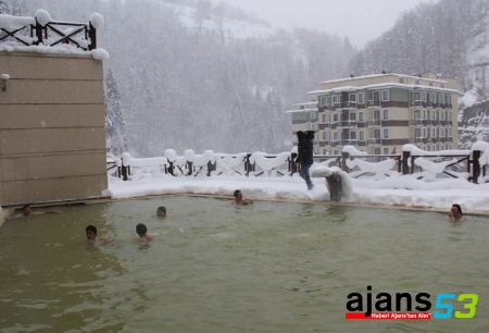 Rize, isteyenlere;-15 derece soğukta, bir metre kar altında, 72 derece sıcaklığa sahip kaplıcada dinlenme imkanı sunuyor.