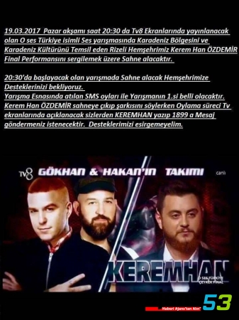 Yarı finalde "Boztepe" isimli türküyü okuyan Kerem Han yine büyük beğeni topladı ve SMS oylamasında finale kalmayı başardı. Böylelikle Kerem Han yarışmadaki tek Karadenizli yarışmacı olma ünvanını sürdürdü..