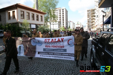 Gençlik ve Spor Bakanlığı Proje ve Koordinasyon Genel Müdürlüğü tarafından Çanakkale Zaferi’nin 102. Yılı etkinlikleri kapsamında 81 ilde düzenlediği 57. Alay Çanakkale Vefa Yürüyüşü Rize’de protokol, vatandaşlar ve yüzlerce gencin katılımı ile yapıldı.