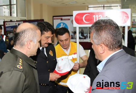 112 Acil Çağrı Merkezinin gereksiz meşgul edilmesinin önlenmesi ve trafikte seyreden ambulansın geçiş önceliğine özen gösterilmesine yönelik toplumsal farkındalık oluşturmak amacıyla kurulan standı, Rize Belediyesi Başkanı Prof.Dr. Reşat Kasap, İl Garnizon Komutanı J. Alb. Semih Coşkun, İl Emniyet Müdürü Sadettin Aksoy ile vatandaşlar ve öğrenciler ziyaret etti.