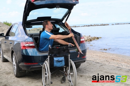 Mustafa Beyaz (26) 2003 yılında geçirdiği trafik kazası sonucu iki bacağını kaybetti. Yaşama azmi ile hayata tutunan Mustafa, 5 yıl önce amatör olarak başladığı su altı sporlarına şimdilerde profesyonel olarak devam ediyor.