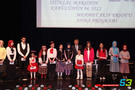 Anma programında, Mehmet Akif Ersoy ve İstiklâl Marşı konulu kompozisyon ve şiir yarışmasında birincilik elde eden öğrenciler eserlerini okudular. İstiklal Marşı okuma yarışmasında ilk ve orta öğrenimde birinci olan öğrenciler İstiklal Marşını seslendirdiler. Öğrencilere ödüllerini Vali Ersin Yazıcı, Garnizon Komutan Vekili Yarbay Nedim Selvisu ile Rize Cumhuriyet Başsavcısı Hüsnü Hakan Yağız verdi.