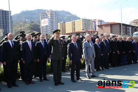 Sabah saatlerinde, Vali Ersin Yazıcı, İl Garnizon Komutanı J.Kd.Alb. İsmet Cansaran, Belediye Başkanı Prof.Dr. Reşat Kasap ve Rize Şehit Aileleri ve Gazileri Derneği Başkanı Kemal Aksu, şehit yakınları, gaziler, askeri ve mülki erkân, kurum müdürleri, STK temsilcileri, öğrenciler ve vatandaşların katılımıyla Şehitlik Anıtı önüne çelenklerin sunulması, saygı duruşu ve İstiklal Marşı’nın okunmasıyla başlayan kutlama programı daha sonra İsmail Kahraman Kültür Merkezi’nde devam etti.