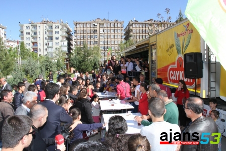 Sempozyumun ardından ÇAYKUR’a ait TIR, vatandaşlara çay ikramında bulundu. İkramın ardından Yaklaşık 50 vatandaşın katılımı ile ‘Çay içme yarışması’ düzenlendi. Yarışmada 2 dakika içerisinde en çok çayı içen vatandaş birinci olurken, çayın sıcaklığı nedeniyle yarışmacılar zor anlar yaşadı.
