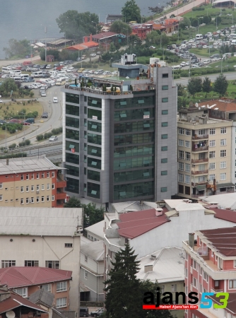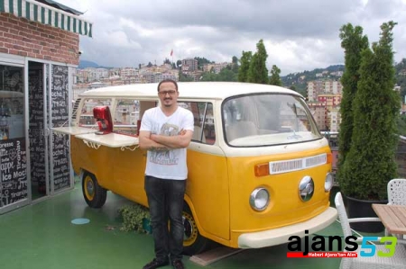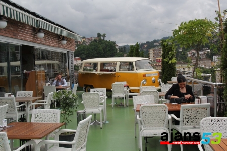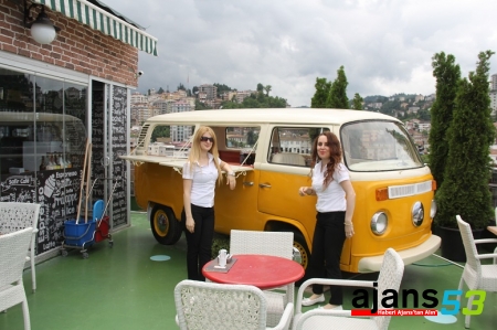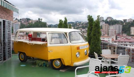 Rize Yavuz Plaza üzerinde 11 katta bulunan Safir Cafe yaz aylarında ki bar ihtiyacını gidermek için çatıya Wolswagen minibüs çıkarttı.