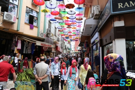 Rize’de ilk kez uygulaması yapılan, Şemsiyeli sokak’tan geçen vatandaşların cep telefonları gökyüzüne çevrildi. Rize Belediyesi ve Rize Kadınlar Eğitim, Kültür, Sosyal Yardımlaşma ve Dayanışma Derneği ni (RİKADER) ‘in işbirliği ile düzenlenen Şemsiyeli sokağın Rengarenk görüntüsünü vatandaşlar cep telefonları ile görüntüledi.