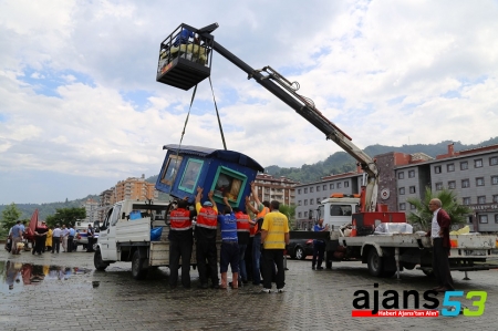 İşgal edilen mekanlara yönelik yapılan çalışmada şahıslara ait eşyalar tutanak altına alınarak Rize Belediyesine ait depoya kaldırıldı.