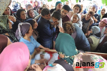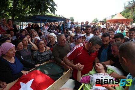Türk bayrağına sarılı cenazeler, dün enkaz altından çıkartılarak Rize Devlet Hastanesine kaldırılan Emniyet Gedik'in kızı Cansu Kaya'nın annesini son kez görmesi için yaklaşık 1,5 saat bekletildi.