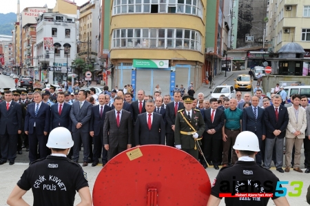 Burada yapılan törende, Vali Ersin Yazıcı, İl Garnizon Komutanı Jandarma Albay Semih Coşkun ve Rize Belediye Başkan vekili Ali Rıza Sancaktutan tarafından Atatürk Anıtı'na çelenk koyuldu. Ulu Önder Mustafa Kemal Atatürk ve Aziz Şehitlerimizin manevi huzurunda saygı duruşu ve İstiklal Marşı okunarak göndere bayrak çekildi. Törene, resmi kurum müdürleri, askeri erkân, siyasi parti il temsilcileri, sivil toplum örgütleri ve vatandaşlar katıldı.