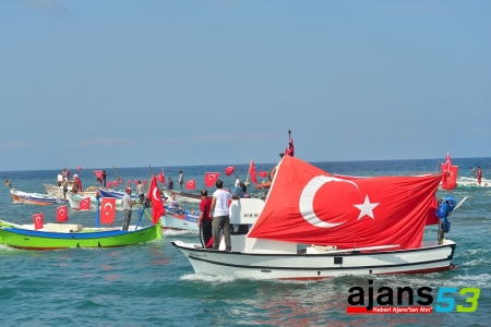 Türk bayrakları ile süslenen yaklaşık 50 balıkçı teknesi, ülke genelinde yaşanan terör olaylarını protesto etmek amacıyla Akçaabat Limanı'ndan denize açıldı.