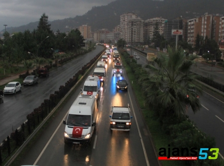 Rize’de toplu taşıma kooperatifleri, bin araçtan oluşan 4 kilometre uzunluğunda bir konvoy oluşturarak terör olaylarını kınadı.