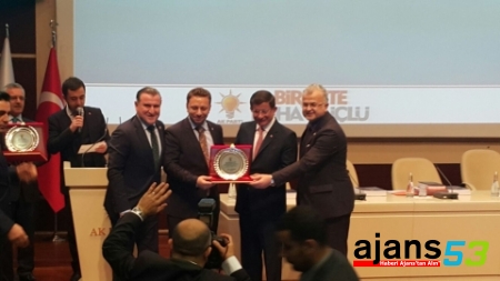 Başbakan Davutoğlu, Rize Belediye Başkanı Prof. Dr. Reşat Kasap, AK Parti Rize İl Başkanı Muhammed Avcı ve AK Parti Rize Milletvekili Osman Aşkın Bak’a 1.’lik plaketini takdim ederek 75,9’luk oranla gelen birincilikten dolayı teşekkürlerini sundu.
