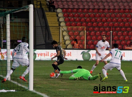 52. dakikada Mehmet’in kafayla indirdiği topu önüne alan Deniz’in ceza sahası içi sağ çaprazda kaleci ile karşı karşıya kaldığı pozisyonda yaptığı vuruşta, kaleci Fatih meşin yuvarlağı ayaklarıyla uzaklaştırdı.