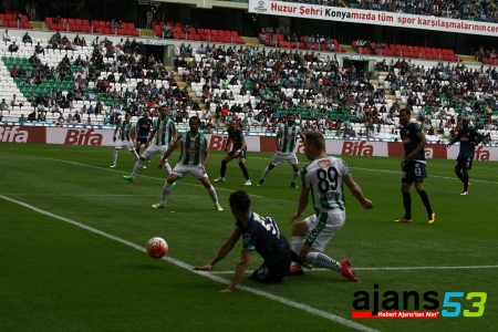 11. dakikada Torku Konyaspor öne geçti. Ömer Ali Şahiner'in soldan kullandığı köşe vuruşunda, ön direkte Halil İbrahim Sönmez topa kafayı vurdu. Meşin yuvarlak filelerle buluştu: 1-0