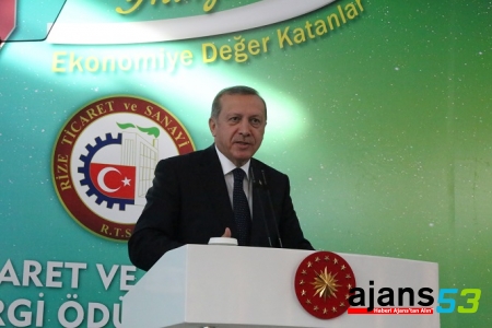 Rize Ticaret ve Sanayi Odasının, 2014'te en çok kurumlar vergisi ve gelir vergisi ödeyen, ihracat yapan, 40'ıncı yılını dolduran ve Türkiye genelinde 500 sanayi kuruluşu arasına giren kişi ve firmalarına ödül vereceğini söyleyen Erdoğan, ödül almaya hak kazanan tüm iş adamları ve firmaları, Türkiye ve Rize'ye yaptıkları hizmet ve katkılardan dolayı tebrik etti.