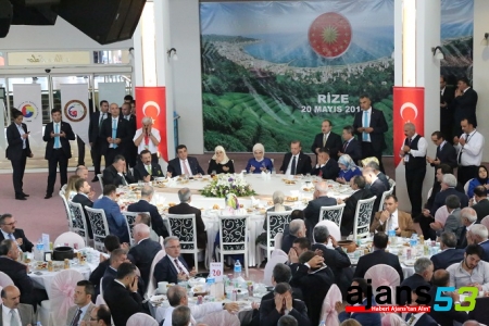 "Okula gitmek için dere tepe saatlerce yol yüründüğü, üniversitenin adını ancak Trabzon'dan sonra rastlanabildiği günleri unutmadık değil mi? Bundan 30 yıl önce Rize'de '12 fakültesi, 6 yüksekokulu, 7 meslek yüksekokulu, 3 enstitüsü olacak, bu üniversitede 17 bine yakın öğrenci okuyacak' denseydi, 30 yılı da bırakın şöyle 15-20 yıl önce denseydi, acaba kim buna inanırdı? Hamdolsun 10 yıldır faaliyette olan üniversitemiz bugün bölgesinin ve ülkemizin en seçkin eğitim öğretim kurumlarından biri olma yolunda ilerliyor. Okul öncesi, ilkokul, ortaokul, lise düzeyinde bin 674 yeni derslikle Rize'ye güçlü bir eğitim yapısı kazandırdık. İmam hatip lisemizin, pansiyonu ve spor salonuyla birlikte inşaatı sürüyor. İnşallah yakında onu da hizmete alacağız. Karadeniz Sahil Yolu'nu hatırlayın, göreve geldiğimizde yüzde 35'i bitmişti, kalan yüzde 65'i hamdolsun başbakanlığımız döneminde bitirdik. Rize'ye yaptığımız 104 kilometre uzunluğundaki bölünmüş yolları, inşaatları süren Ovit tünelini, Rize İkizdere yolunu, Rize Dağdibi yolunu sizler gayet iyi biliyorsunuz. Şu anda Ovit tüneli hızla yürüyor, bitmek üzere. Lojistik tesisler, o da yapılacak."