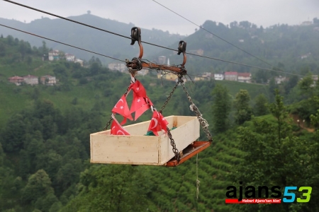 Defin işleminin ardından yaşlı kadının boş tabutu, ilkel teleferiğe konularak araç yoluna gönderildi.