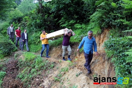 Rize'de hayatını kaybeden 90 yaşındaki kadının cenazesi, arazi anlaşmazlığı nedeniyle yol yapılamayan mezarlığa, 1,5 kilometrelik dik patika yoldan omuzlarda taşınarak götürüldü.