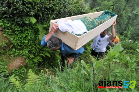 Ay'ın cenazesi, arazi anlaşmazlığı nedeniyle yol yapılamadığı için araçla ulaşmanın mümkün olmadığı mezarlığa köylüler tarafından taşındı.