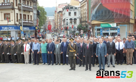 30 Ağustos Zafer Bayramının 94 üncü yıl dönümü nedeniyle Cumhuriyet ve Demokrasi meydanında düzenlenen törene Rize Valisi Erdoğan Bektaş, Belediye Başkanı Reşat Kasap ve birçok daire amiri ile STK temsilcileri katıldı.