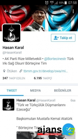 AK Parti Rize Milletvekili Hasan Karal adına bilgisi dışında Twitter üzerinden açılan hesap mahkemelik oluyor. Kendilerini “Börteçine Tim” olarak adlandıran hacker grubu tarafından açıldığı tahmin edilen hesapta "Türk Bayrağı, Türkmen Bayrağı, Atatürk ve Bozkurt figürlü fotoğraflar yer alıyor.