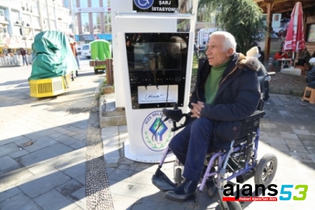 Rize Belediyesi, akülü tekerlekli sandalye kullanan engelli vatandaşlar için şehir merkezinin farklı noktalarına Akü Dolum İstasyonları kurdu.