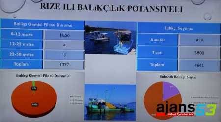 Gıda, Tarım ve Hayvancılık İl Müdürü Bulut, yaptığı sunumda; Rize genelinde çeşitli boy ve ebatlarda toplam 1077 adet balıkçı gemisi filosunun bulunduğunu ve gerek amatör gerekse ticari olmak üzere 4641 kişinin balıkçılıkla meşgul olduğunu belirterek son beş yıl içerisinde balıkçı gemilerinin desteklemesi kapsamında 1.274.000 TL. su ürünleri yetiştiriciliğinin desteklenmesi kapsamında da 3.248.175 TL. ödemenin gerçekleştirildiğini belirtti.