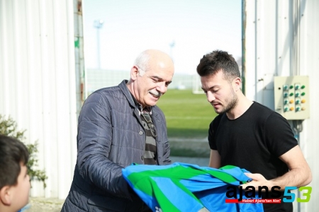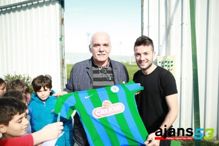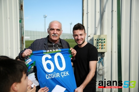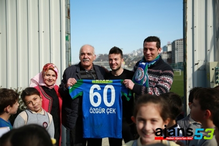 Çaykur Rizespor – Galatasaray maçında frikik golünden sonra tribünde çekilen görüntünün kahramanı Selim Kuleli’ye golün sahibi Özgür Çek formasını hediye etti.