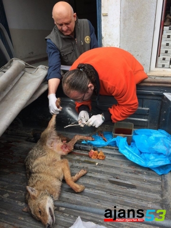 Trabzon’un Of ilçesindeki Bölümlü mahallesinde geçtiğimiz günlerde meydana gelen olayda bir çakal köpeklerden kaçarken cami klimasının korkuluğuna sıkıştı. Mahalle sakinlerinin Sürmene Milli Parklar Şefliği ekiplerine haber vermesiyle sıkıştığı korkuluktan kurtarılan “Altın” cinsli çakal veterinere götürüldü. Buradaki tedavisinin ardından yaralı çakal doğaya tekrar bırakıldı.