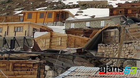 Rize'nin Çamlıhemşin ilçesine bağlı Kavrun yaylasında etkili olan hortum ve tipi, yayla evlerinin çatılarını uçurdu.