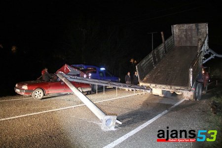 Karabük'ün Yenice ilçesinde damperi açılan seyir halindeki kamyonunun çarptığı yükseklik işaret levhası, otomobilin üzerine düşerek sürücüsünün yaralanmasına neden oldu.