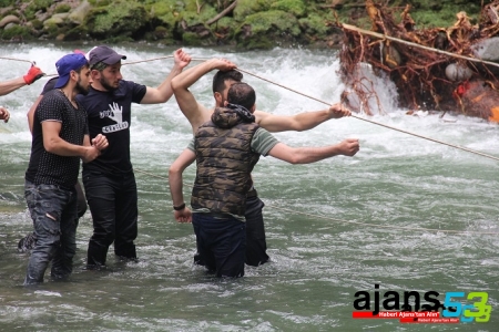 Edinilen bilgiye göre, arkadaşı Murat Büyük ile balık avladığı sırada suya düşüp kaybolan Hanifi Kalyoncu'nun bulunması için ekipler, yaklaşık 200 metre uzunluğundaki halatla Zilkale mevkisinden dereye inerek arama çalışması yaptı.