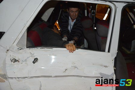 Otomobilde sıkışan yaralılar, itfaiye ekiplerinin çalışması sonucu çıkarıldı.