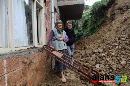 - Rize’nin Pazar ilçesinde Kantar ailesi evlerinin kapısına yamaçtan kopan toprak parçalarının kapatması ve girişin yağmur sularıyla dolması nedeniyle evlerine pencereden girip çıkmak zorunda kalıyorlar