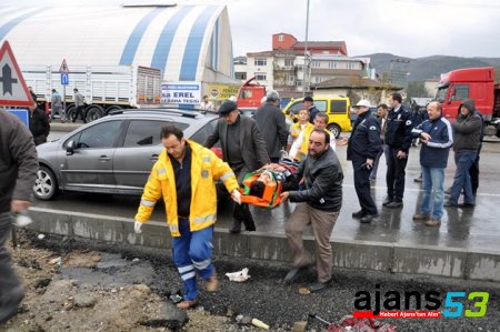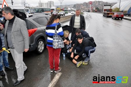 Zonguldak'ın Ereğli ilçesinde, otomobilin çarpması sonucu yaralanan çocuğun yağmurdan ıslanmaması için bir kadın başında şemsiyeyle bekledi.